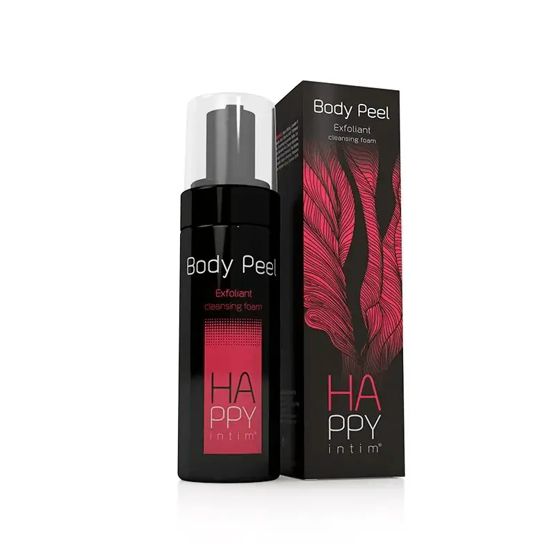 Happy Intim® Body Peel es una espuma limpiadora exfoliante no abrasiva formulada para eliminar suavemente las impurezas de la piel y mejorar su textura.