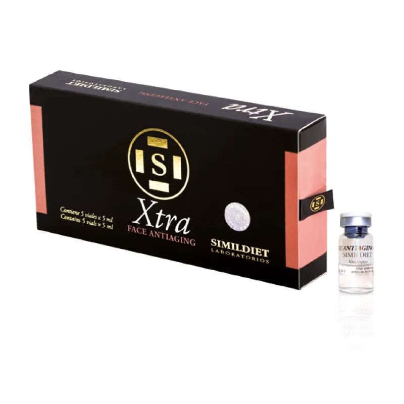 Xtra Face Antiaging actúa estimulando la proliferación celular y la síntesis de MECs (Matriz extracelular), restaurando el aspecto envejecido de la piel y la elasticidad, tersura y vitalidad de la cara, Estimula la producción fibrilar (colágeno, elastina) y la regeneración celular. 5 viales de 5 ml cada uno.